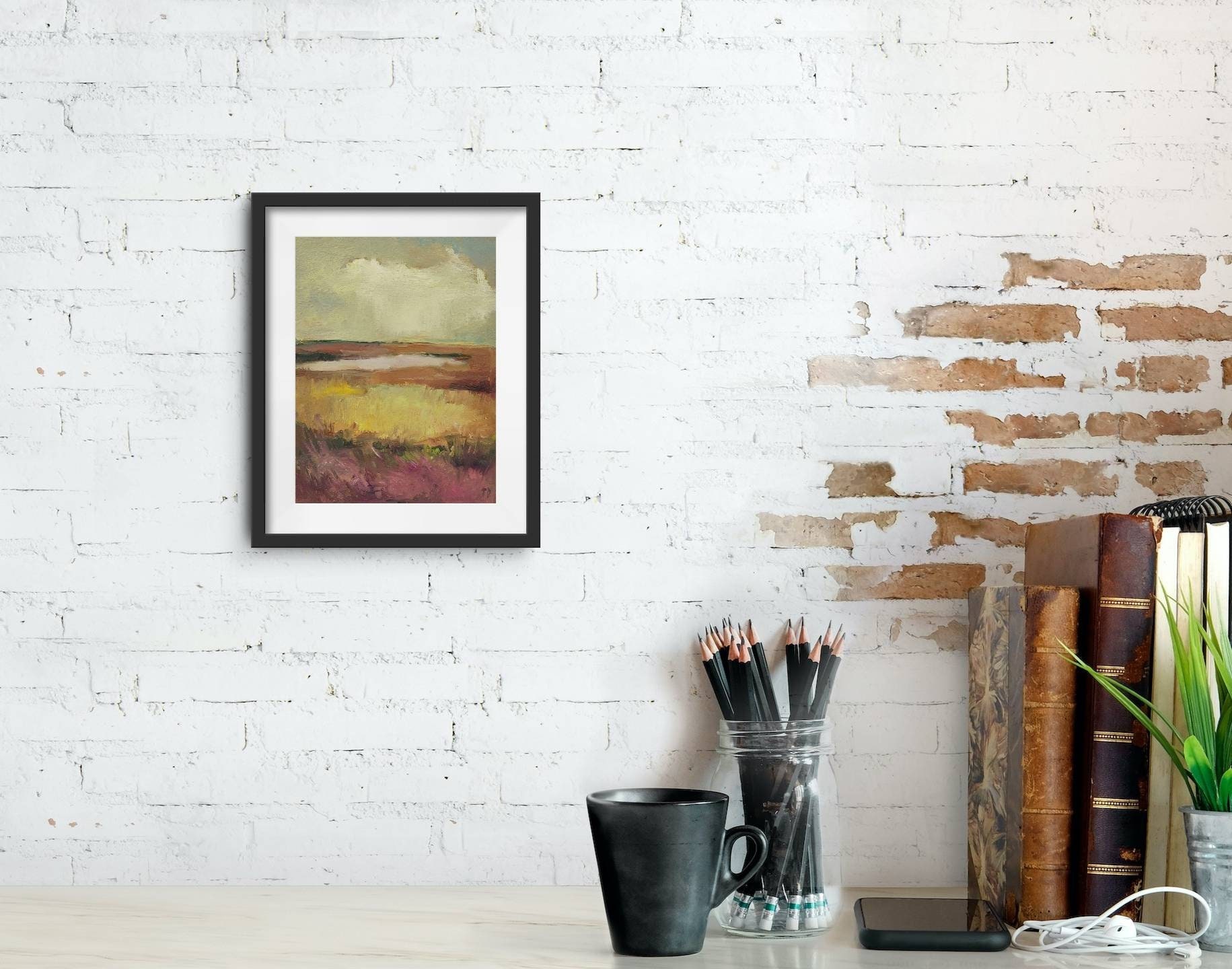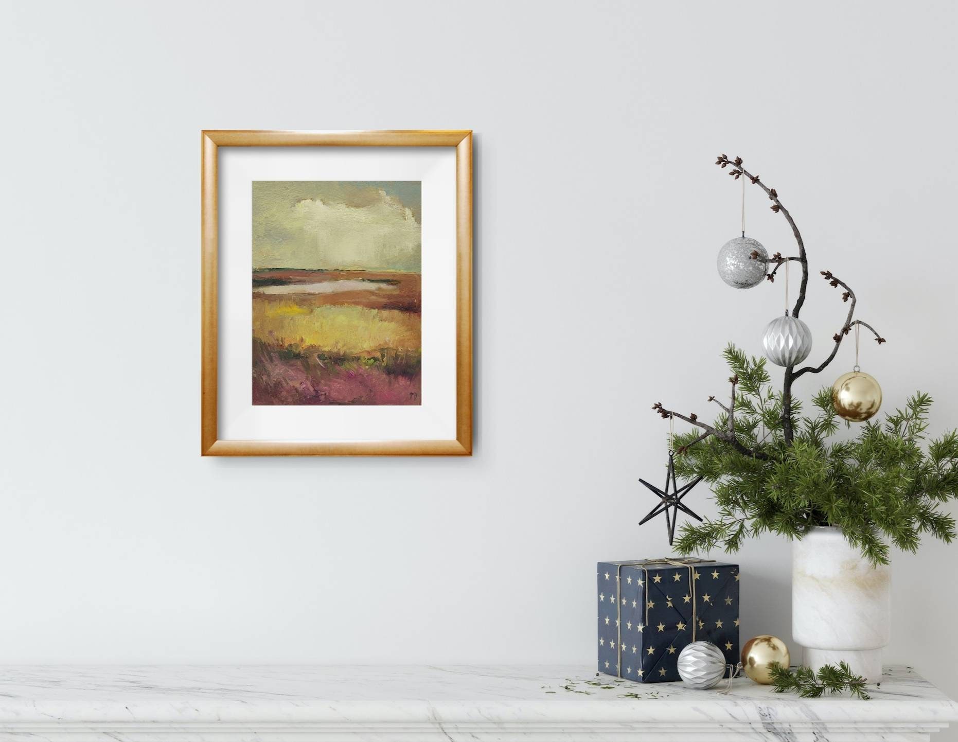 Suitable for a modern interior of a farmhouse, country house. Will complement your collection of small paintings of forest, trees, rural landscape...
