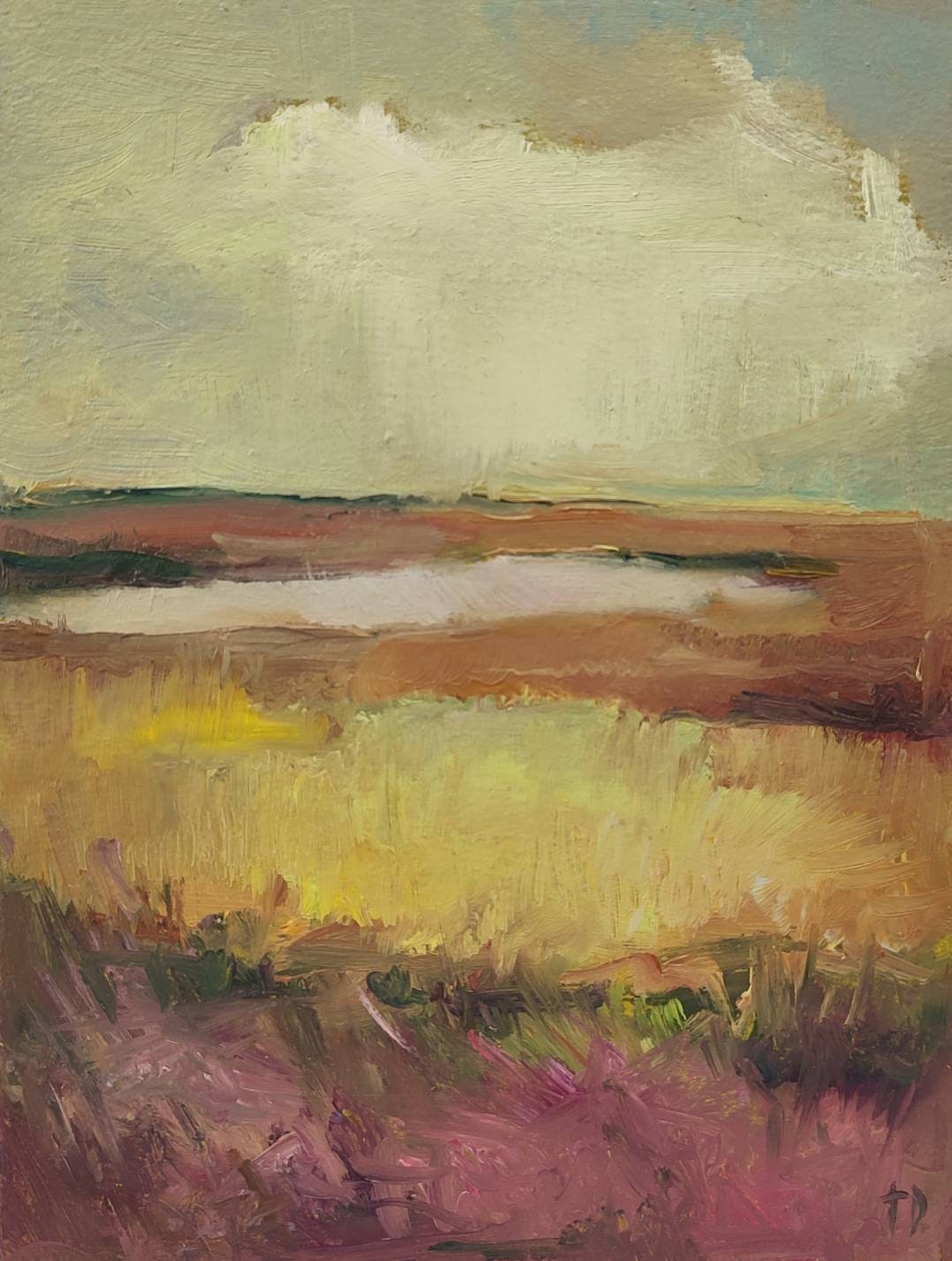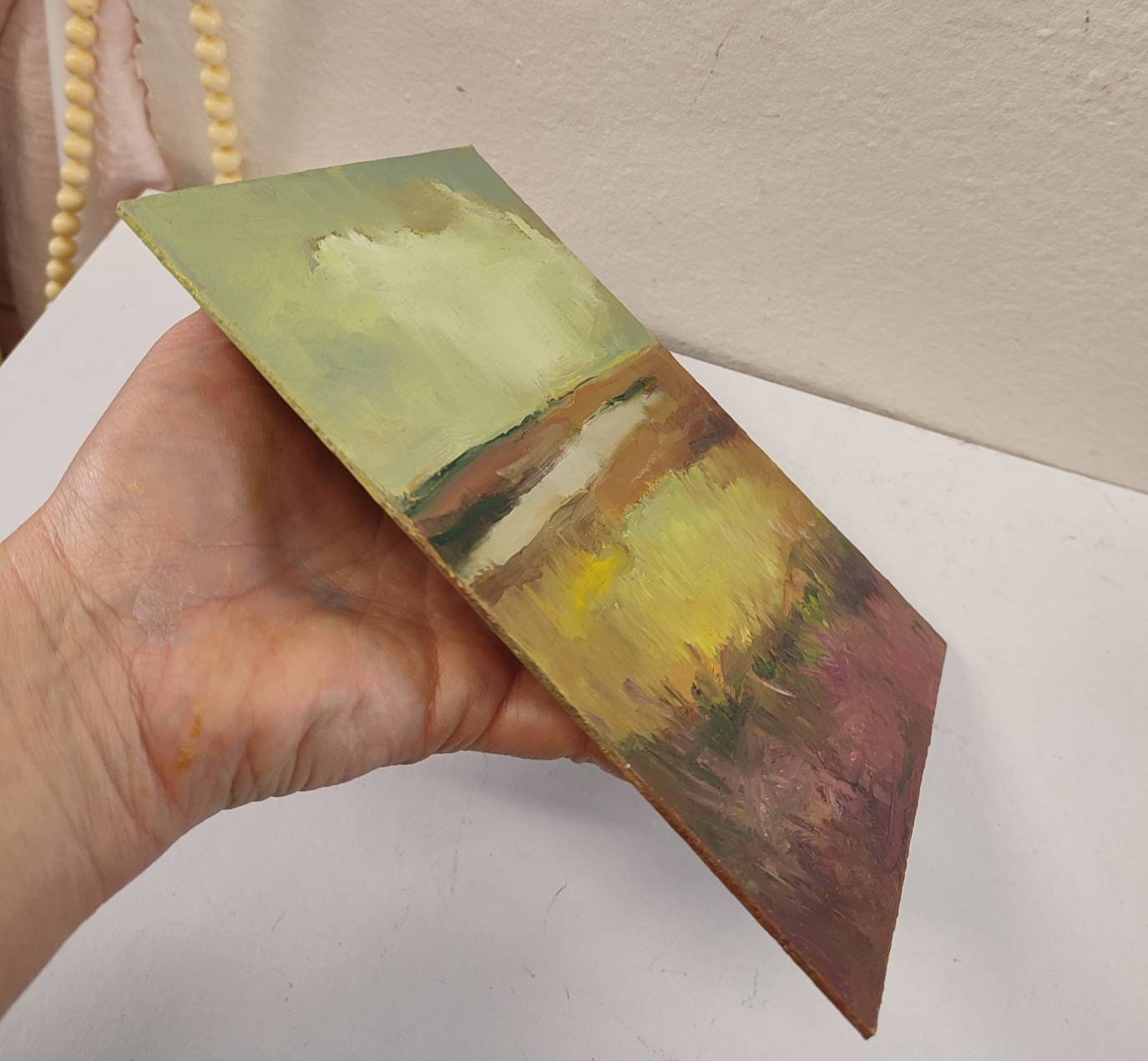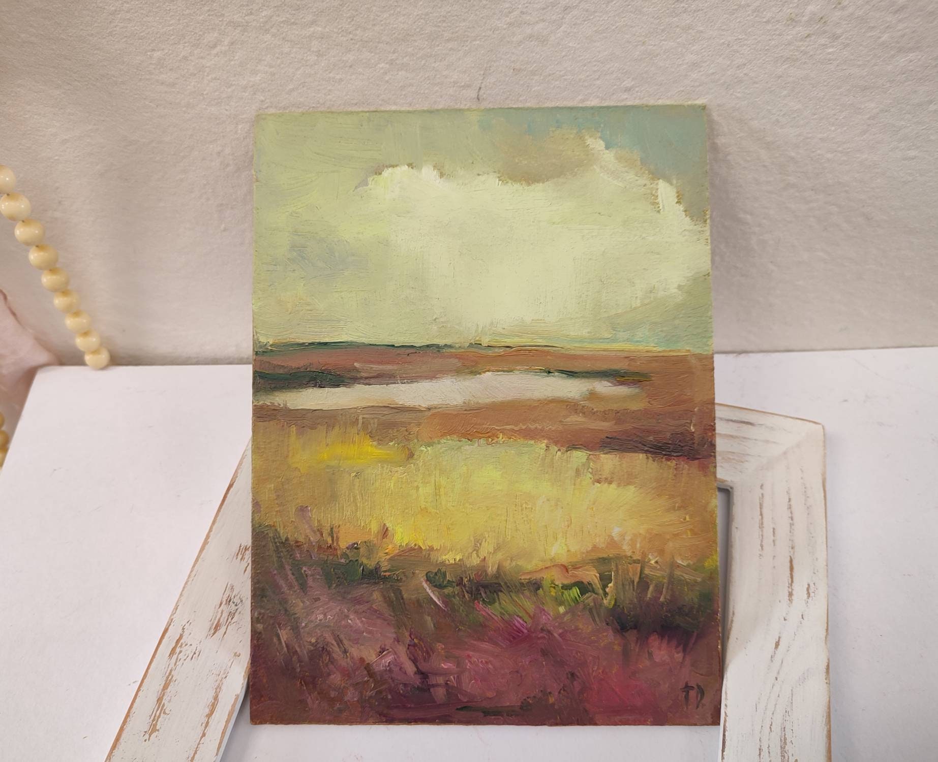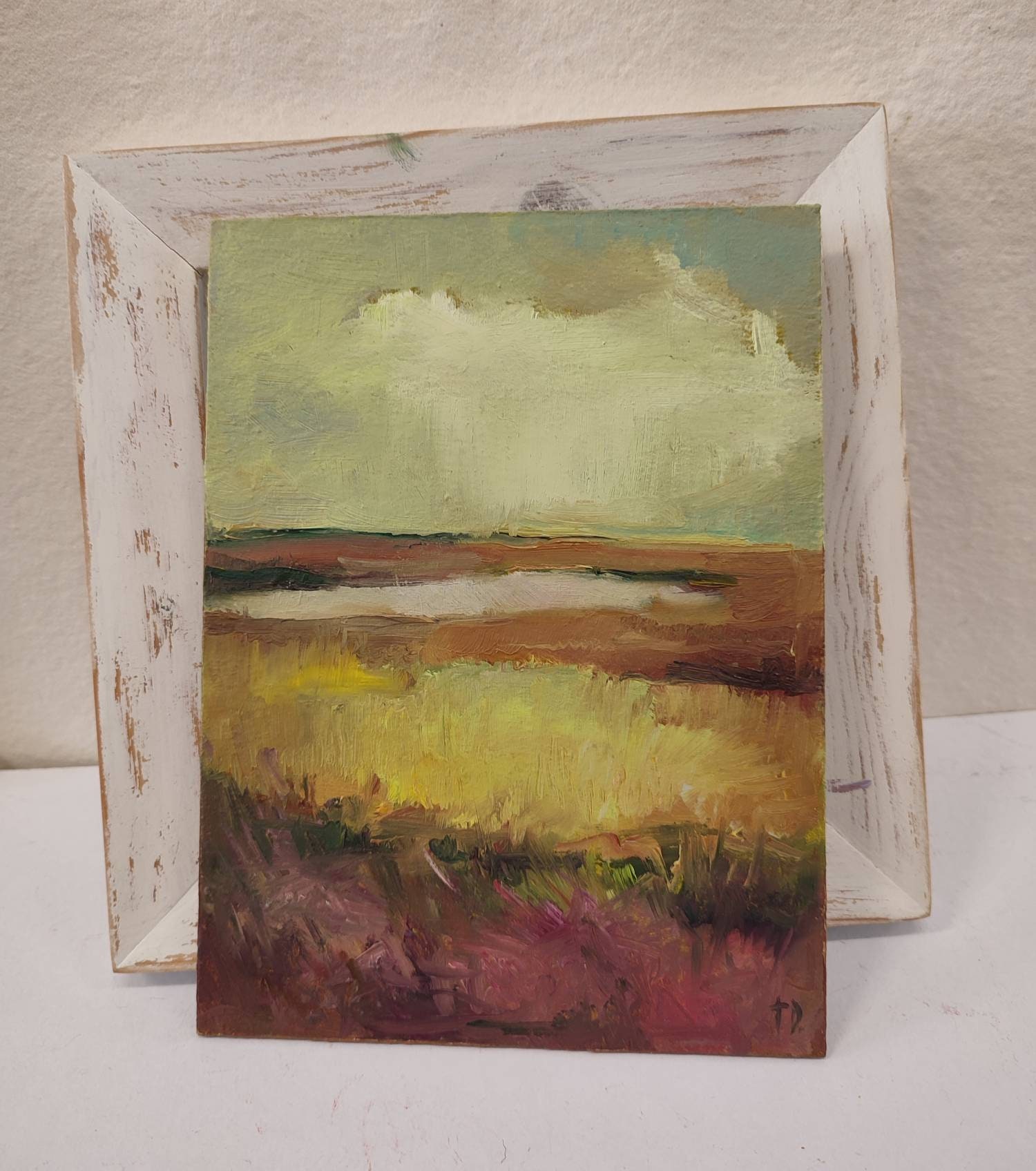 This is an original oil painting on the cardboard panel.