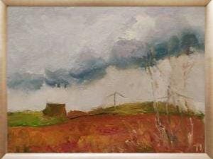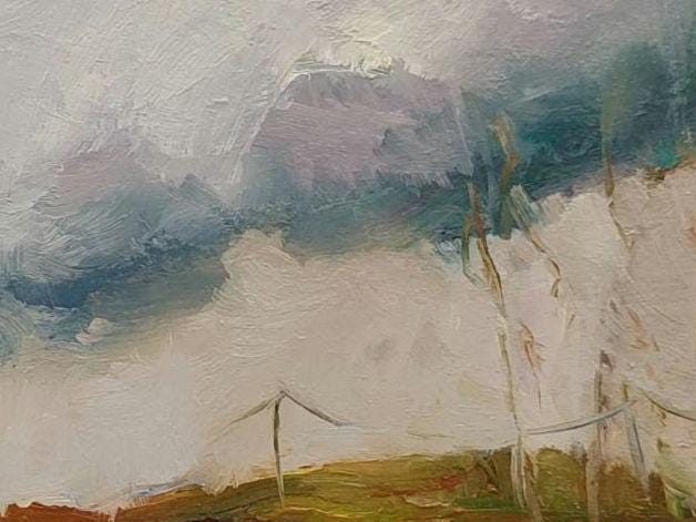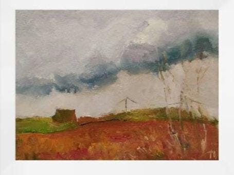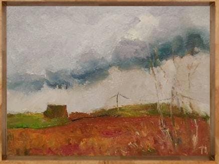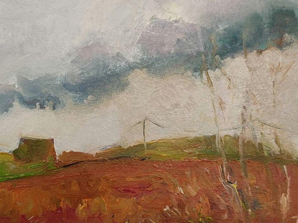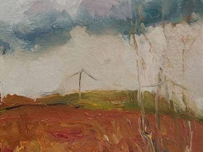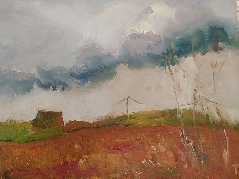 Rustic oil painting autumn field, original oil painting, cardboard panel 6x8 inches