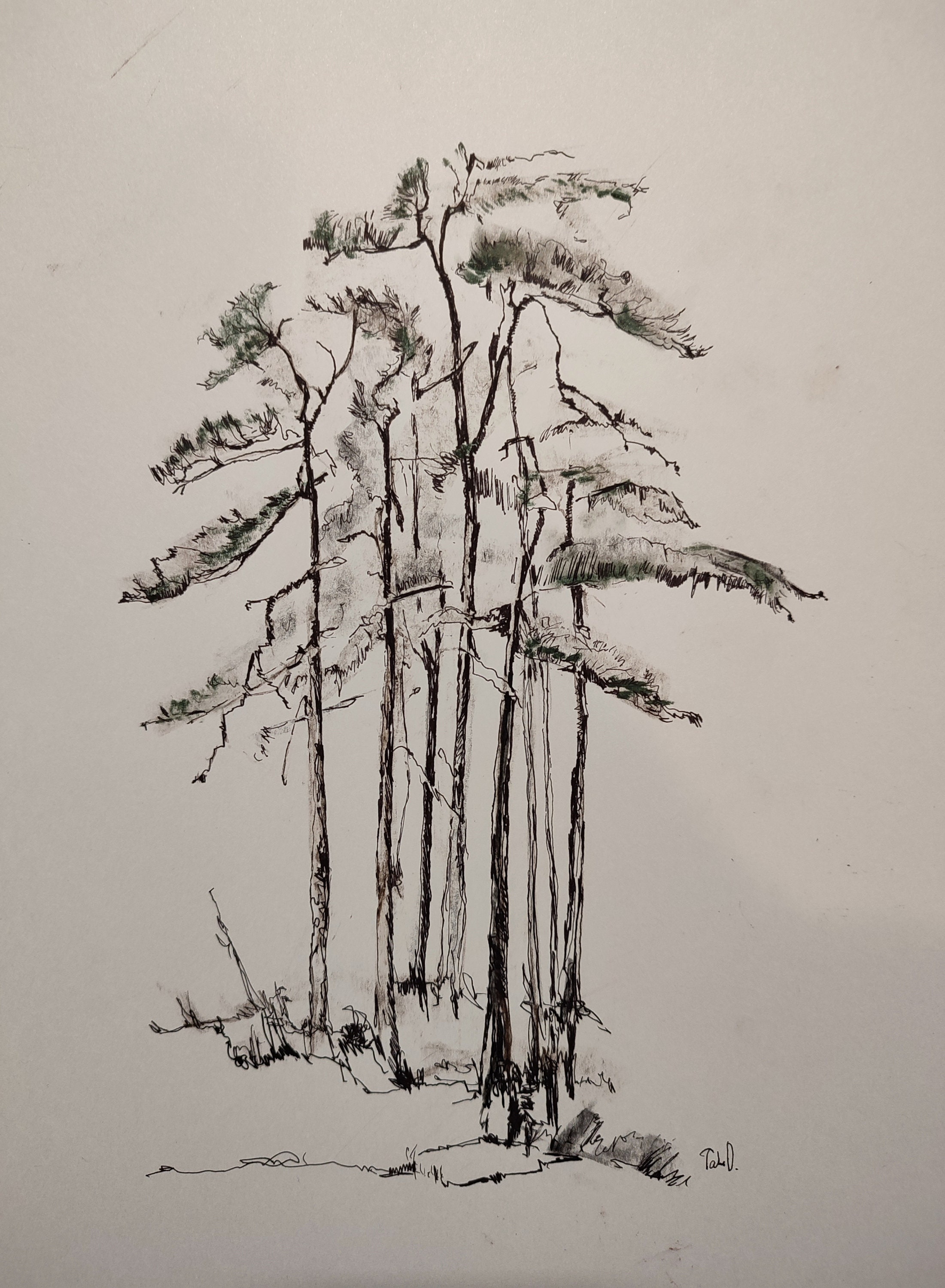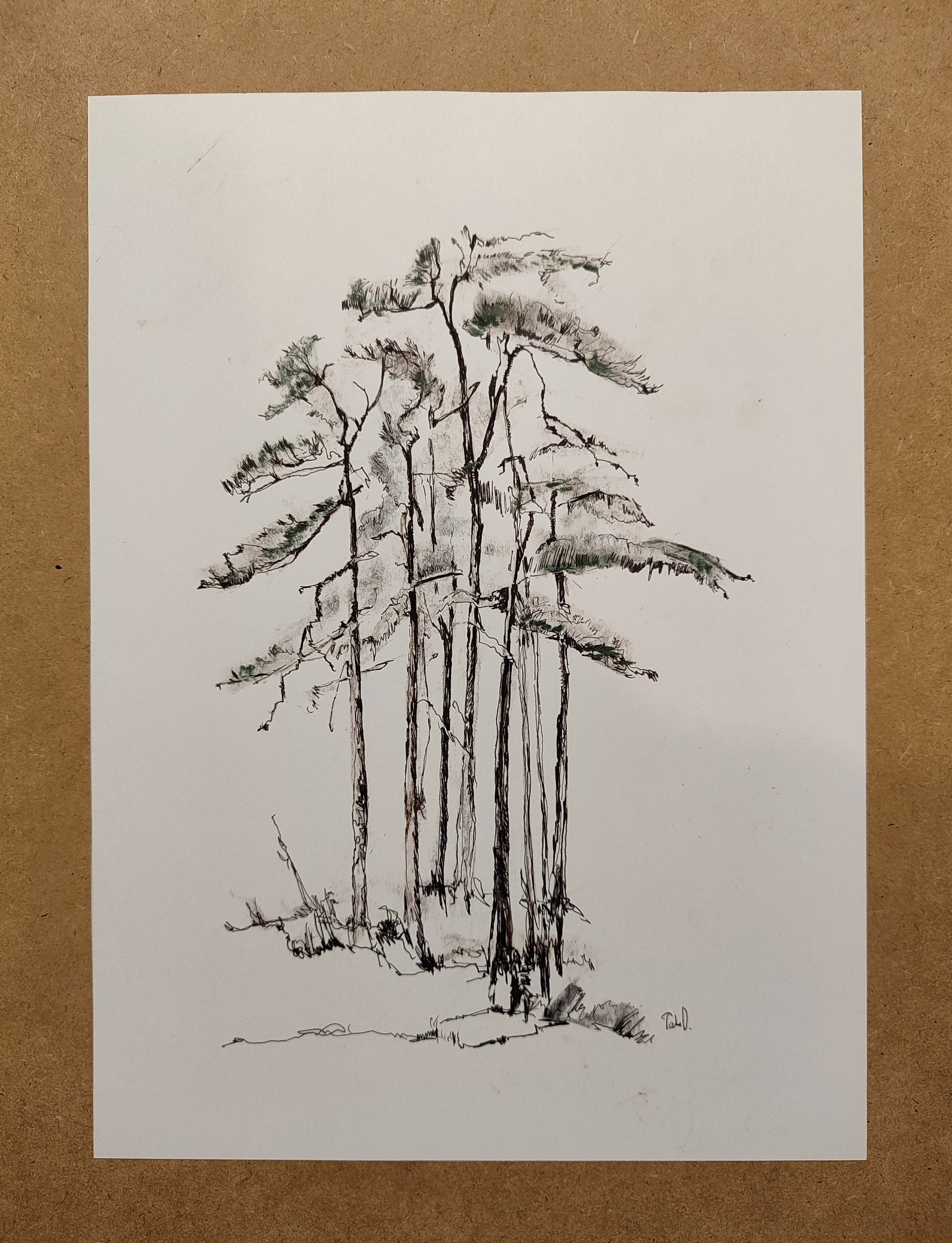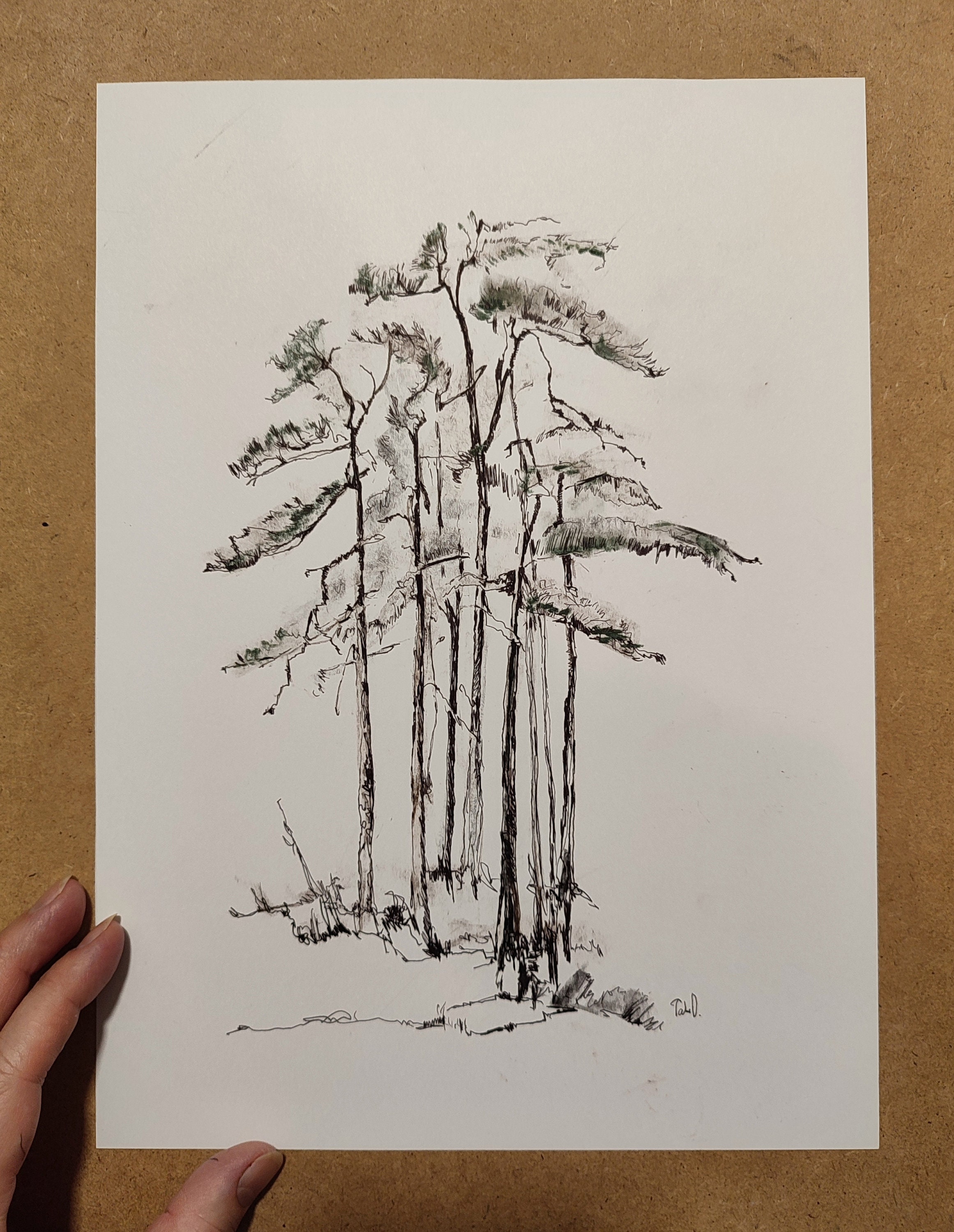 Winter holidays wall art, snow forest drawing tree. Christmas tree drawing. Black ink one line drawing. Original drawing, decorations for winter holidays, new year. Antique look wall art, unique small presents for art lovers. Gifts for your best friend, wallart 22x30cm.