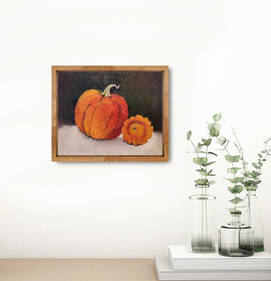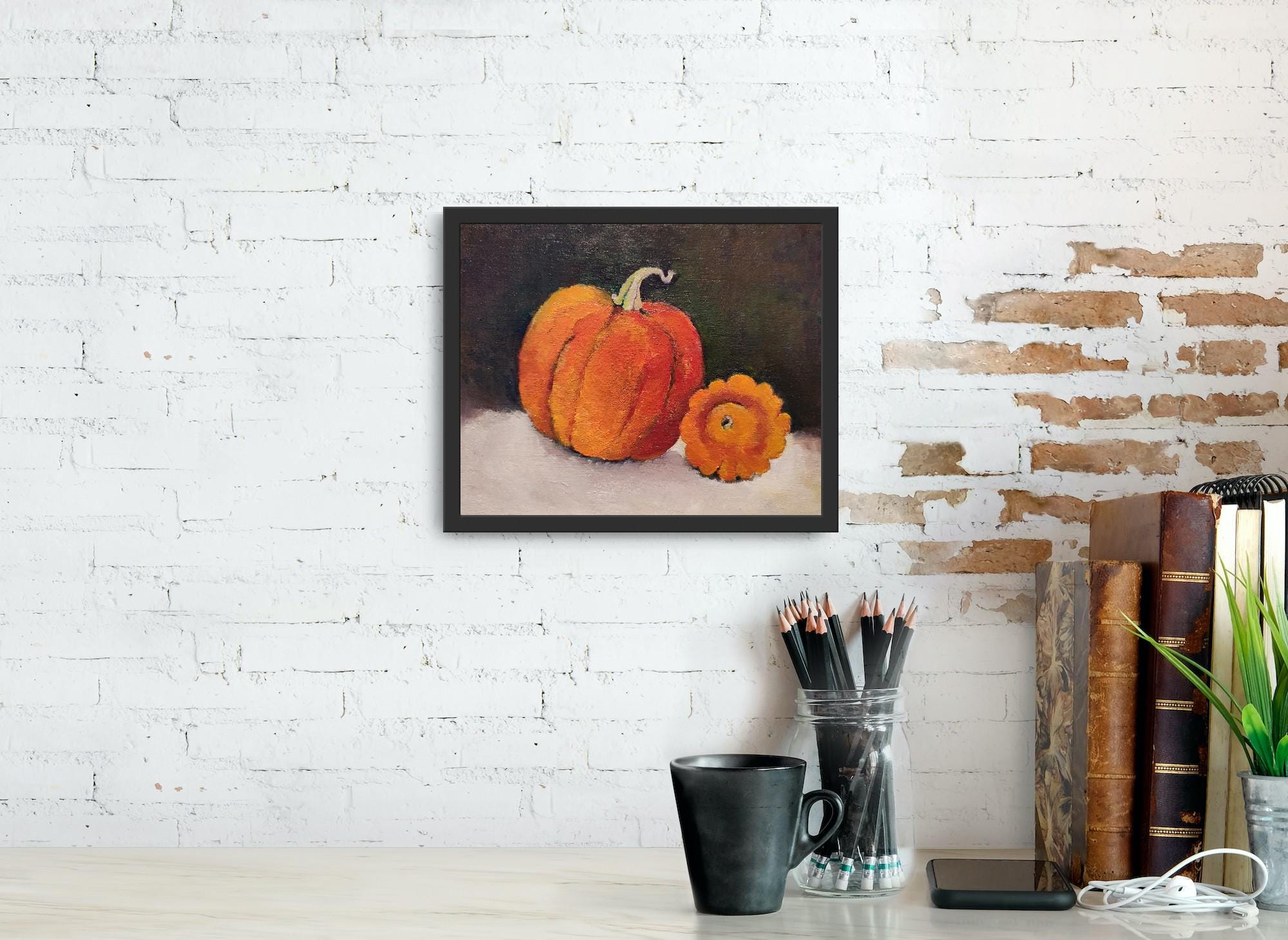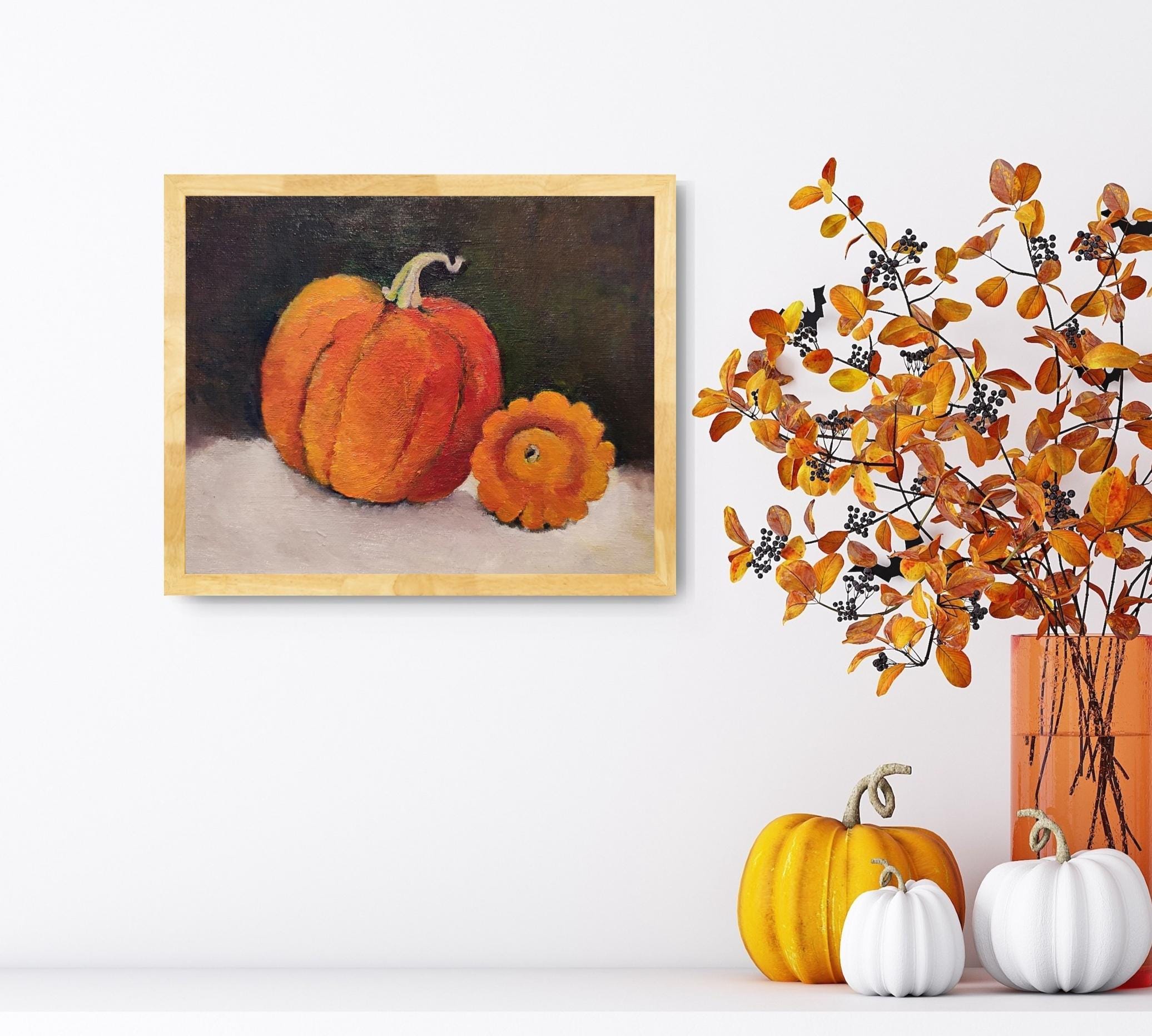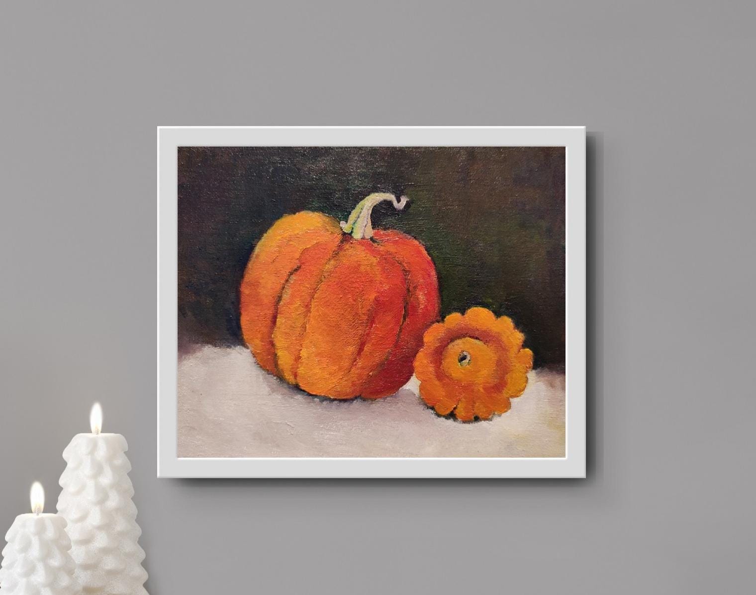 Fall Decor, Original Oil Painting, Pumpkin Wall Art, Fall Painting, Original Art Work, Bestfriend Gift, Autumnal Home Decor.