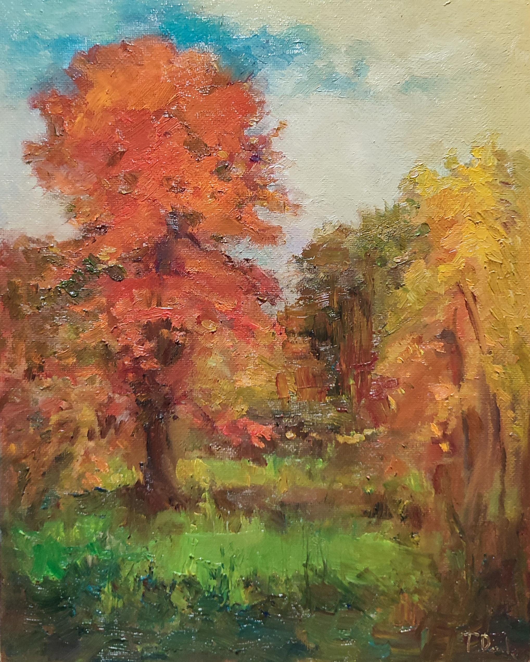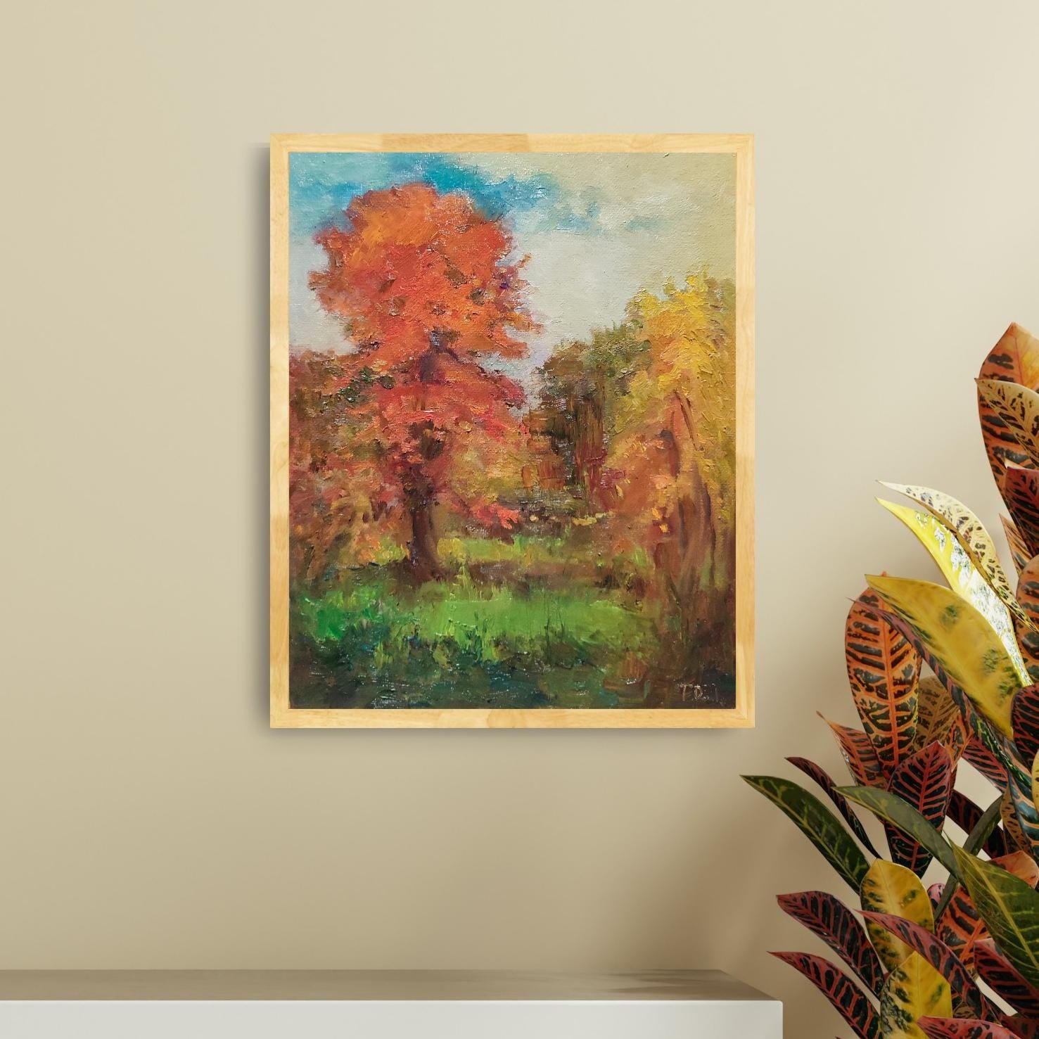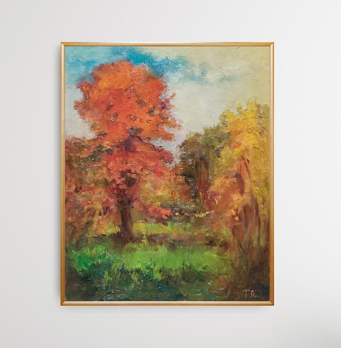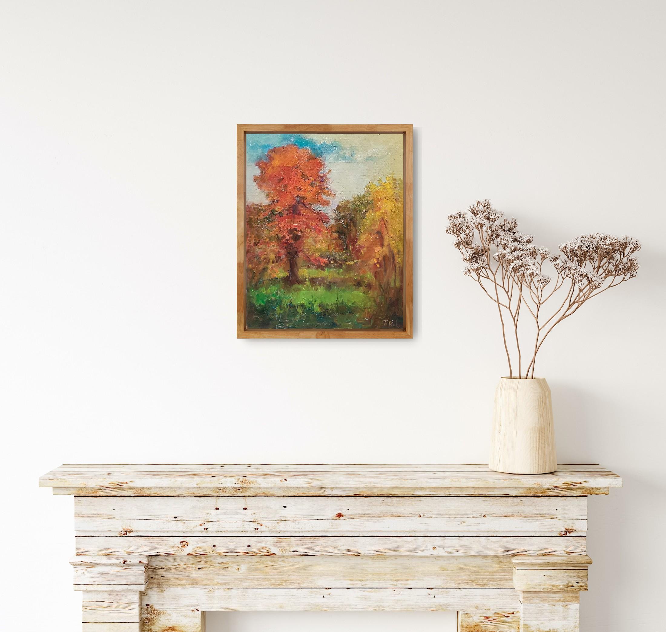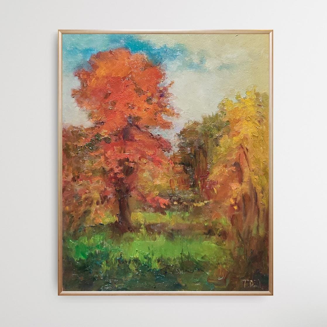 Fall Painting, Original Painted Canvas on Panel, Forest Oil Painting, Autumn Oil Painting, Thanksgiving Decor, Antique Oil Painting Style 9.5x12 inches.