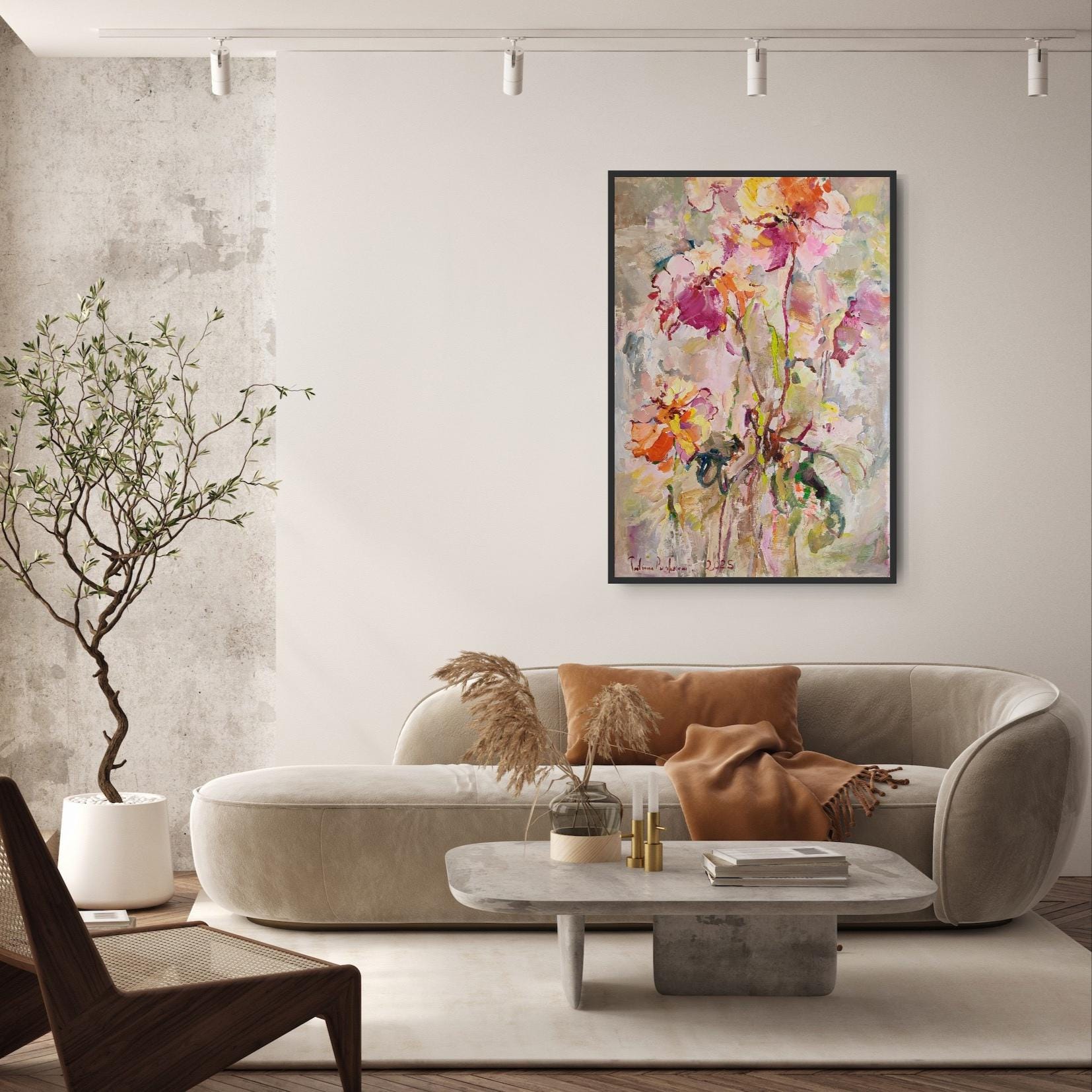 Floral Bouquet Painting Oversized Canvas Art Original Acrylic Flower Paintings Abstract.