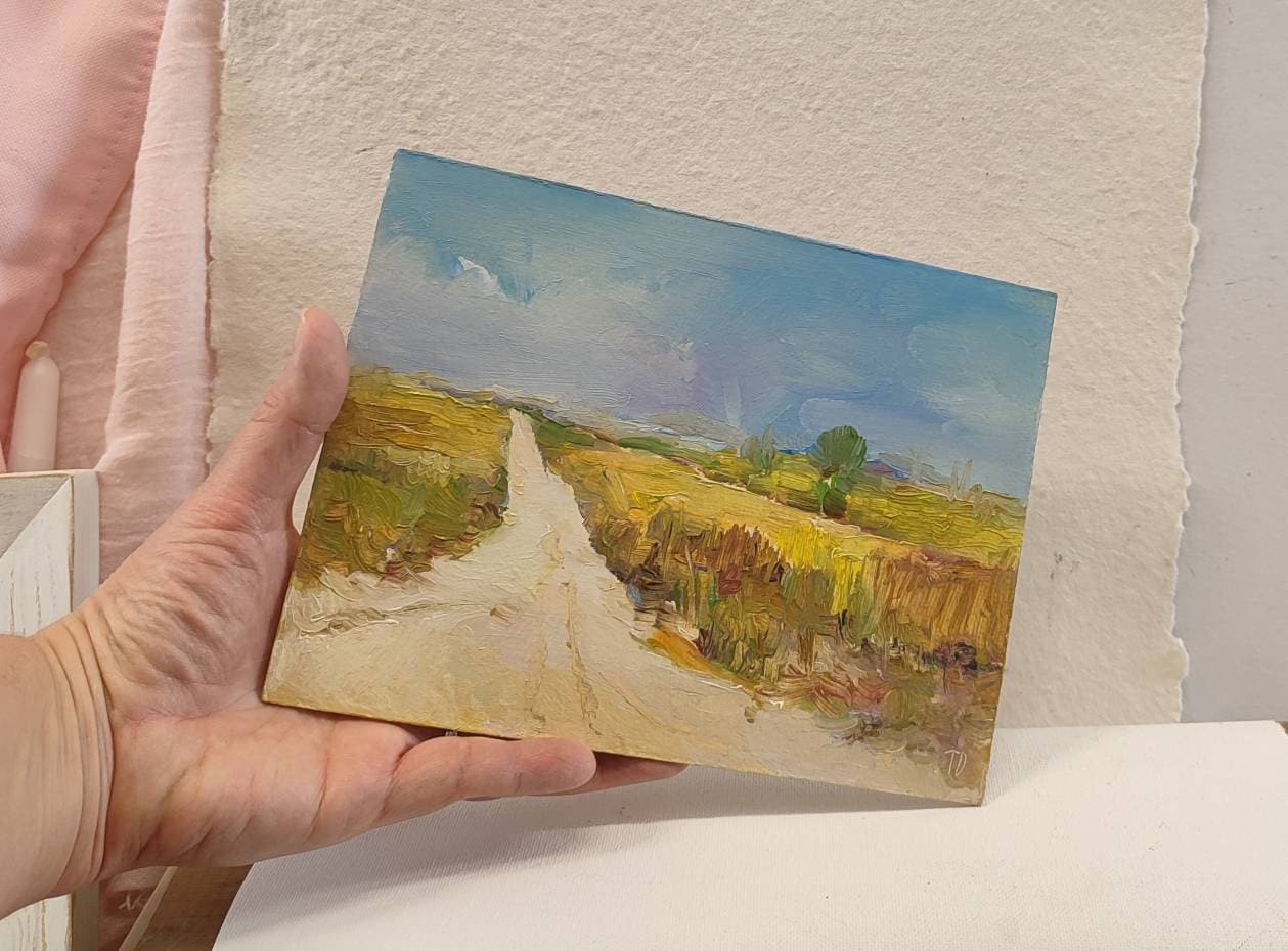 Landscape oil painting, tiny painting, nature miniature. Miniature oil painting, countryside painting ArtduStudio, 6×8 inches.